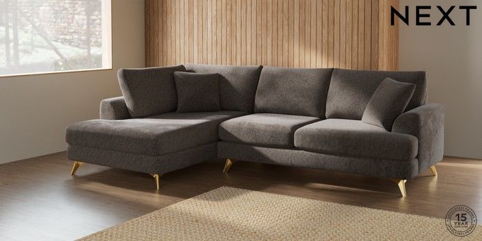 7.2.5 Buy Parker Medium Corner Chaise - Left Hand Chunky Chenille Mink Brown High Metal - Brass from the Laura Ashley online shop Click here to use our website with more accessibility support, for example screen readers