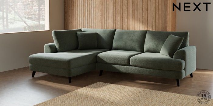 7.2.5 Buy Parker Medium Corner Chaise - Left Hand Chunky Texture Mid Forest Green Low Retro Tapered - Dark from the Laura Ashley online shop Click here to use our website with more accessibility support, for example screen readers