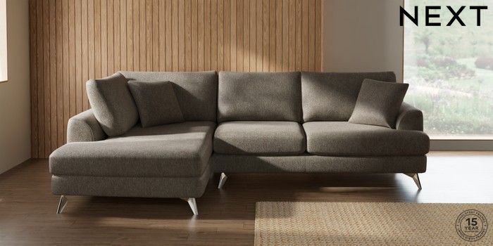 7.0.3 Buy Parker Medium Corner Chaise - Left Hand Cotswold Chenille Mid Mink Brown High Metal - Chrome from the Laura Ashley online shop Click here to use our website with more accessibility support, for example screen readers
