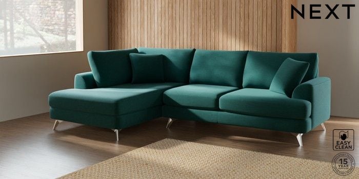 7.2.5 Buy Parker Medium Corner Chaise - Left Hand Fine Chenille Easy Clean Dark Juniper Green High Metal - Chrome from the Laura Ashley online shop Click here to use our website with more accessibility support, for example screen readers