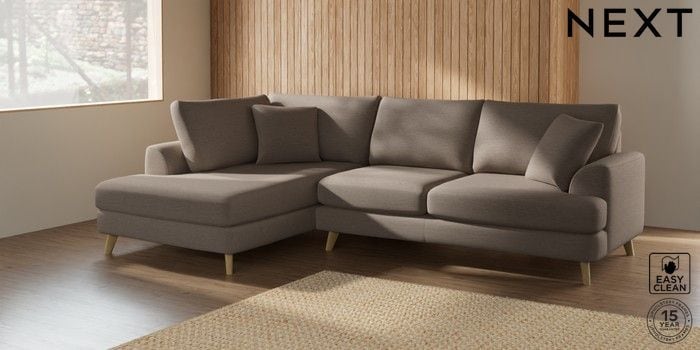 7.2.5 Buy Parker Medium Corner Chaise - Left Hand Fine Chenille Easy Clean Mid Taupe Brown Low Retro Tapered - Light from the Laura Ashley online shop Click here to use our website with more accessibility support, for example screen readers
