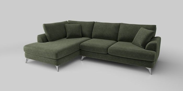 6.12.1 Buy Parker Medium Corner Chaise - Left Hand Luxe Chenille Mid Green High Metal - Chrome from the Laura Ashley online shop Click here to use our website with more accessibility support, for example screen readers