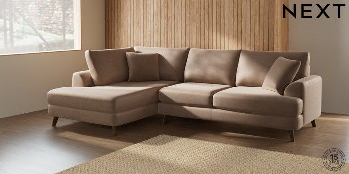 7.2.5 Buy Parker Medium Corner Chaise - Left Hand Luxe Chenille Mid Natural Low Retro Tapered - Mid from the Laura Ashley online shop Click here to use our website with more accessibility support, for example screen readers