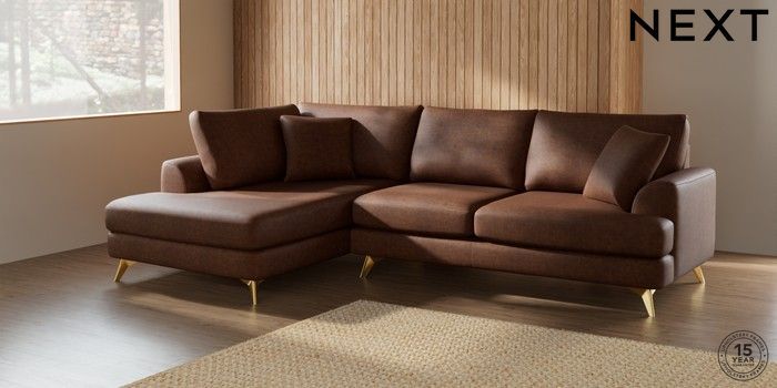 7.2.5 Buy Parker Medium Corner Chaise - Left Hand Monza Faux Leather Easy Clean Chestnut Brown High Metal - Brass from the Laura Ashley online shop Click here to use our website with more accessibility support, for example screen readers