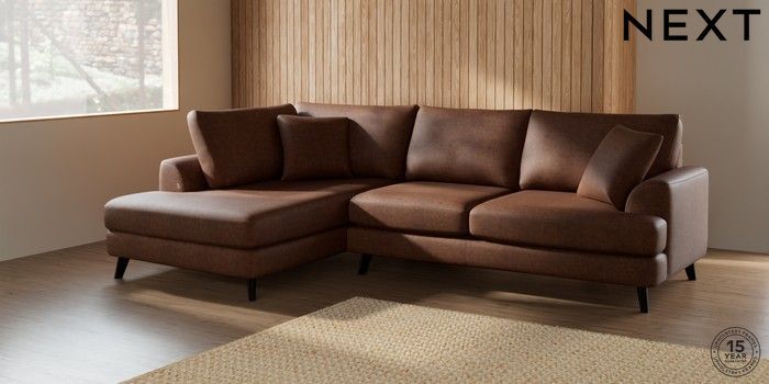 7.2.5 Buy Parker Medium Corner Chaise - Left Hand Monza Faux Leather Easy Clean Chestnut Brown Low Retro Tapered - Dark from the Laura Ashley online shop Click here to use our website with more accessibility support, for example screen readers