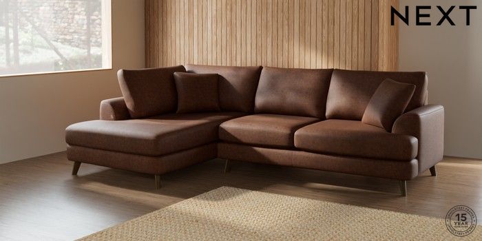 7.2.5 Buy Parker Medium Corner Chaise - Left Hand Monza Faux Leather Easy Clean Chestnut Brown Low Retro Tapered - Mid from the Laura Ashley online shop Click here to use our website with more accessibility support, for example screen readers