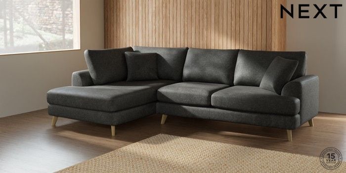 7.2.5 Buy Parker Medium Corner Chaise - Left Hand Plush Chenille Dark Grey Low Retro Tapered - Light from the Laura Ashley online shop Click here to use our website with more accessibility support, for example screen readers