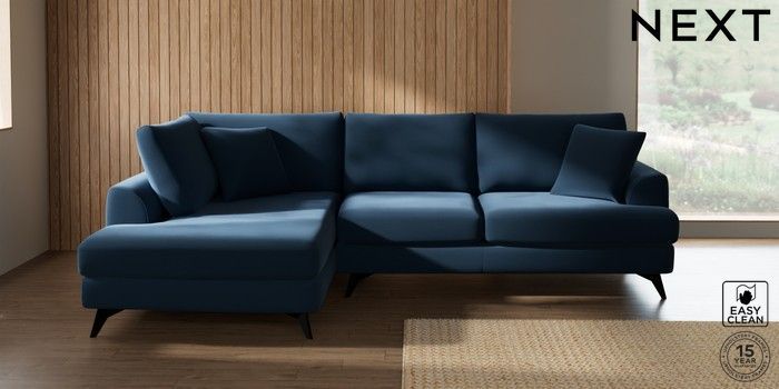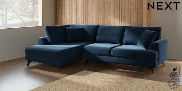 7.2.4 Buy Parker Medium Corner Chaise - Left Hand Plush Velvet Easy Clean Airforce Blue High Metal - Black from the Laura Ashley online shop Click here to use our website with more accessibility support, for example screen readers