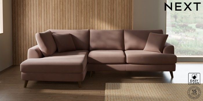 7.2.10 Buy Parker Medium Corner Chaise - Left Hand Plush Velvet Easy Clean Mid Natural Low Retro Tapered - Mid from the Laura Ashley online shop Click here to use our website with more accessibility support, for example screen readers