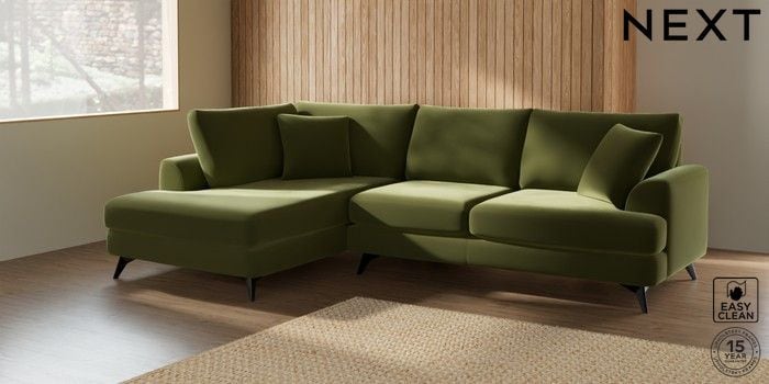7.2.5 Buy Parker Medium Corner Chaise - Left Hand Plush Velvet Easy Clean Mid Olive Green High Metal - Black from the Laura Ashley online shop Click here to use our website with more accessibility support, for example screen readers