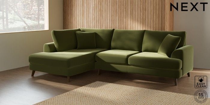 7.2.5 Buy Parker Medium Corner Chaise - Left Hand Plush Velvet Easy Clean Mid Olive Green Low Retro Tapered - Mid from the Laura Ashley online shop Click here to use our website with more accessibility support, for example screen readers