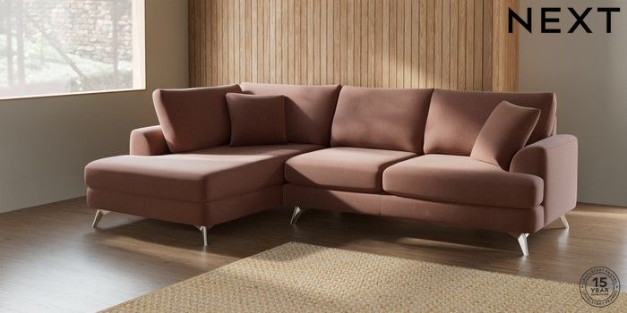 7.0.3 Buy Parker Medium Corner Chaise - Left Hand Relaxed Linen Look Light Rust Brown High Metal - Chrome from the Laura Ashley online shop Click here to use our website with more accessibility support, for example screen readers