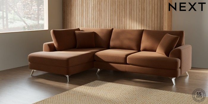 7.2.5 Buy Parker Medium Corner Chaise - Left Hand Ripple Chenille Mid Rust Brown High Metal - Chrome from the Laura Ashley online shop Click here to use our website with more accessibility support, for example screen readers