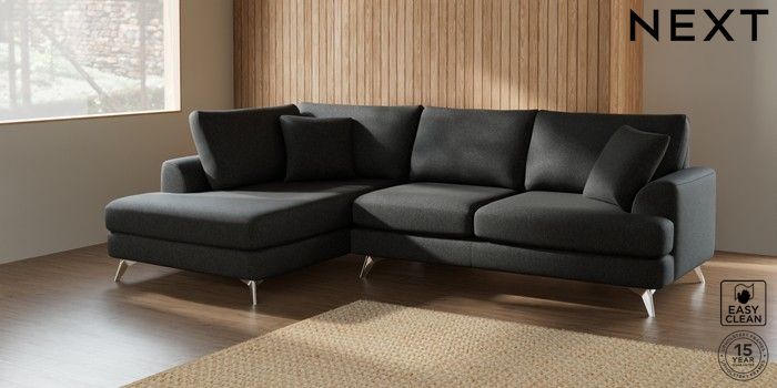 7.2.5 Buy Parker Medium Corner Chaise - Left Hand Tweedy Blend Easy Clean Charcoal Grey High Metal - Chrome from the Laura Ashley online shop Click here to use our website with more accessibility support, for example screen readers