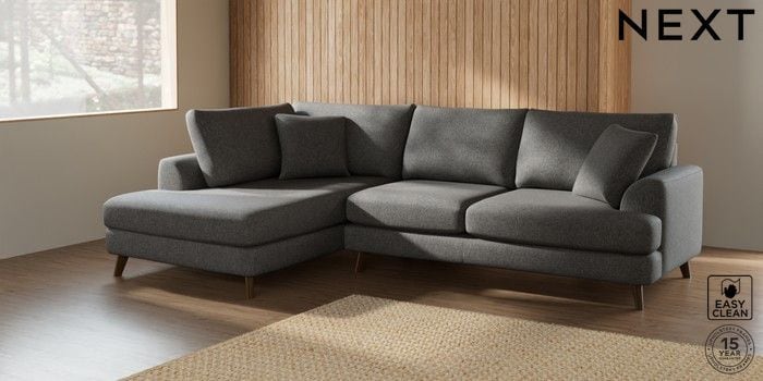 7.2.5 Buy Parker Medium Corner Chaise - Left Hand Tweedy Blend Easy Clean Dark Grey Low Retro Tapered - Mid from the Laura Ashley online shop Click here to use our website with more accessibility support, for example screen readers