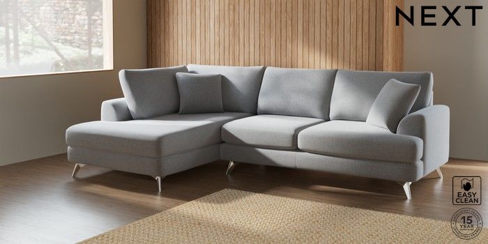 7.2.5 Buy Parker Medium Corner Chaise - Left Hand Tweedy Blend Easy Clean Light Silver Grey High Metal - Chrome from the Laura Ashley online shop Click here to use our website with more accessibility support, for example screen readers