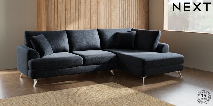 7.2.5 Buy Parker Medium Corner Chaise - Right Hand Boucle Chenille Dark Slate Blue High Metal - Chrome from the Laura Ashley online shop Click here to use our website with more accessibility support, for example screen readers