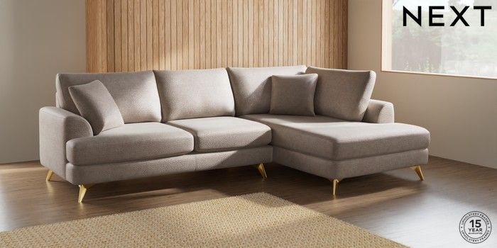 7.2.5 Buy Parker Medium Corner Chaise - Right Hand Boucle Chenille Light Natural High Metal - Brass from the Laura Ashley online shop Click here to use our website with more accessibility support, for example screen readers