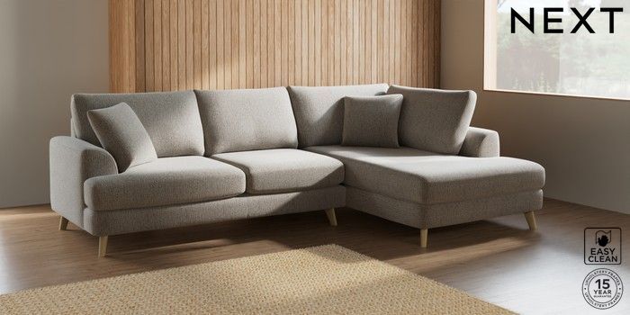 7.2.5 Buy Parker Medium Corner Chaise - Right Hand Chunky Boucle Easy Clean Dove Low Retro Tapered - Light from the Laura Ashley online shop Click here to use our website with more accessibility support, for example screen readers