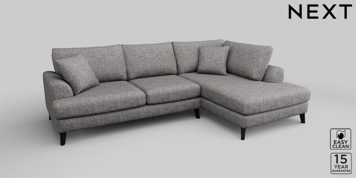 6.12.1 Buy Parker Medium Corner Chaise - Right Hand Chunky Boucle Easy Clean Light Grey Low Retro Tapered - Dark from the Laura Ashley online shop Click here to use our website with more accessibility support, for example screen readers