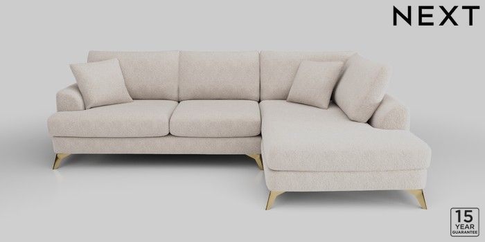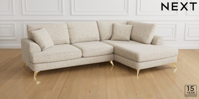 6.11.4 Buy Parker Medium Corner Chaise - Right Hand Chunky Chenille Oyster High Metal - Brass from the Laura Ashley online shop Click here to use our website with more accessibility support, for example screen readers
