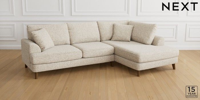 6.11.4 Buy Parker Medium Corner Chaise - Right Hand Chunky Chenille Oyster Low Retro Tapered - Mid from the Laura Ashley online shop Click here to use our website with more accessibility support, for example screen readers