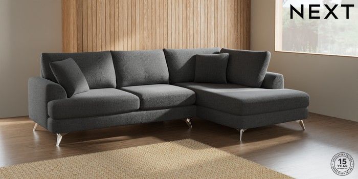 7.2.5 Buy Parker Medium Corner Chaise - Right Hand Chunky Texture Dark Grey High Metal - Chrome from the Laura Ashley online shop Click here to use our website with more accessibility support, for example screen readers