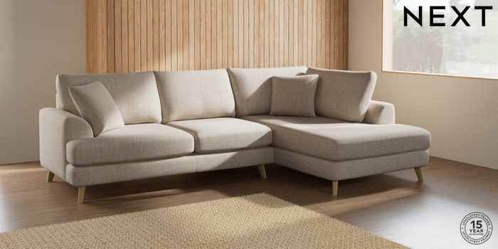 7.2.5 Buy Parker Medium Corner Chaise - Right Hand Chunky Weave Mid Natural Low Retro Tapered - Light from the Laura Ashley online shop Click here to use our website with more accessibility support, for example screen readers
