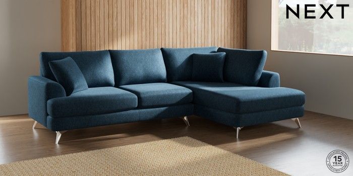 7.2.5 Buy Parker Medium Corner Chaise - Right Hand Cotswold Chenille Dark Blue High Metal - Chrome from the Laura Ashley online shop Click here to use our website with more accessibility support, for example screen readers