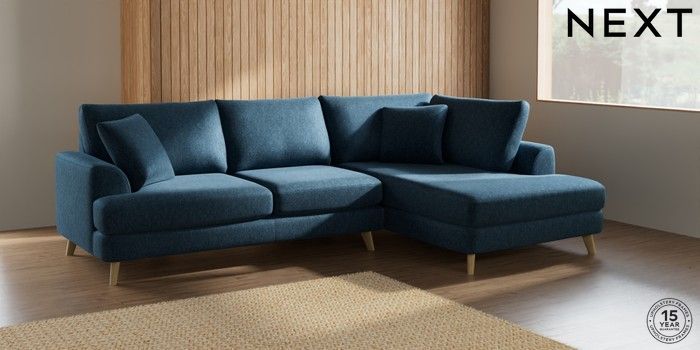 7.2.5 Buy Parker Medium Corner Chaise - Right Hand Cotswold Chenille Dark Blue Low Retro Tapered - Light from the Laura Ashley online shop Click here to use our website with more accessibility support, for example screen readers