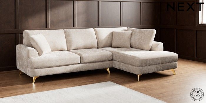 7.2.5 Buy Parker Medium Corner Chaise - Right Hand Distressed Velour Mid Natural High Metal - Brass from the Laura Ashley online shop Click here to use our website with more accessibility support, for example screen readers