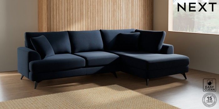 7.2.5 Buy Parker Medium Corner Chaise - Right Hand Fine Chenille Easy Clean Dark Navy Blue High Metal - Black from the Laura Ashley online shop Click here to use our website with more accessibility support, for example screen readers