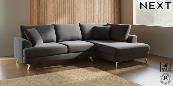 7.2.5 Buy Parker Medium Corner Chaise - Right Hand Fine Chenille Easy Clean Dark Smoke Grey High Metal - Brass from the Laura Ashley online shop Click here to use our website with more accessibility support, for example screen readers