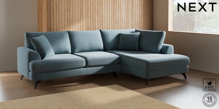 7.2.5 Buy Parker Medium Corner Chaise - Right Hand Fine Chenille Easy Clean Mid Blue High Metal - Black from the Laura Ashley online shop Click here to use our website with more accessibility support, for example screen readers