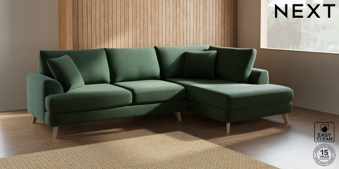 7.2.5 Buy Parker Medium Corner Chaise - Right Hand Fine Chenille Easy Clean Mid Khaki Green Low Retro Tapered - Light from the Laura Ashley online shop Click here to use our website with more accessibility support, for example screen readers