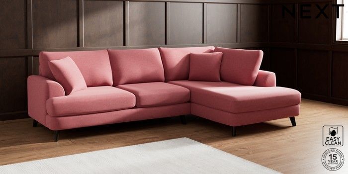 7.2.5 Buy Parker Medium Corner Chaise - Right Hand Fine Chenille Easy Clean Mid Pink Low Retro Tapered - Dark from the Laura Ashley online shop Click here to use our website with more accessibility support, for example screen readers