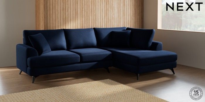 7.2.5 Buy Parker Medium Corner Chaise - Right Hand Luxe Chenille Navy Blue High Metal - Black from the Laura Ashley online shop Click here to use our website with more accessibility support, for example screen readers