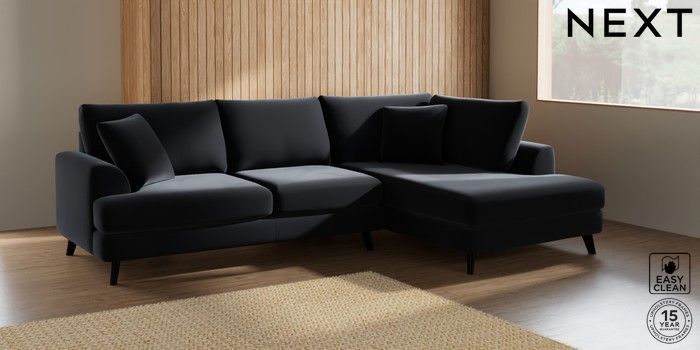 7.2.5 Buy Parker Medium Corner Chaise - Right Hand Plush Velvet Easy Clean Charcoal Grey Low Retro Tapered - Dark from the Laura Ashley online shop Click here to use our website with more accessibility support, for example screen readers