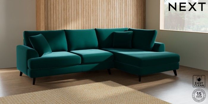 7.2.5 Buy Parker Medium Corner Chaise - Right Hand Plush Velvet Easy Clean Juniper Green Low Retro Tapered - Dark from the Laura Ashley online shop Click here to use our website with more accessibility support, for example screen readers