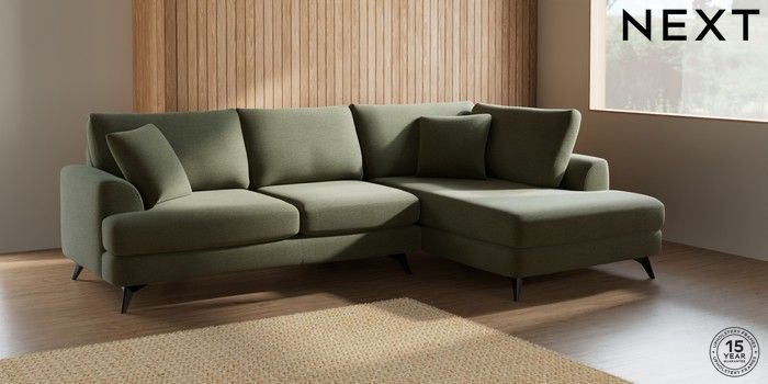 7.2.5 Buy Parker Medium Corner Chaise - Right Hand Ripple Chenille Mid Moss Green High Metal - Black from the Laura Ashley online shop Click here to use our website with more accessibility support, for example screen readers
