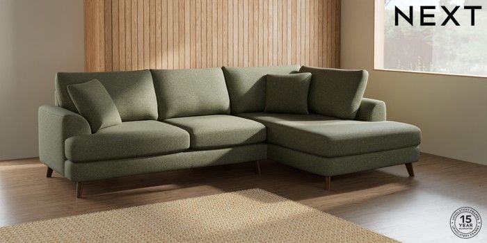 7.2.5 Buy Parker Medium Corner Chaise - Right Hand Tweedy Chenille Mid Moss Green Low Retro Tapered - Mid from the Laura Ashley online shop Click here to use our website with more accessibility support, for example screen readers
