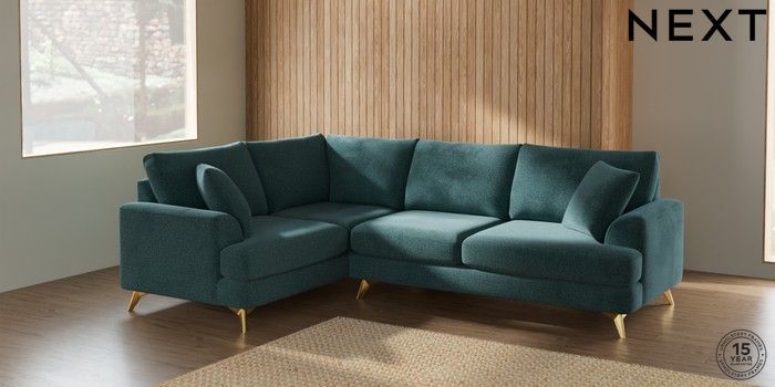 7.2.5 Buy Parker Medium Corner Sofa - Left Hand Chunky Chenille Mid Teal Green High Metal - Brass from the Laura Ashley online shop Click here to use our website with more accessibility support, for example screen readers