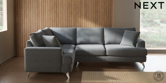 7.0.3 Buy Parker Medium Corner Sofa - Left Hand Chunky Marl Mid Grey High Metal - Chrome from the Laura Ashley online shop Click here to use our website with more accessibility support, for example screen readers