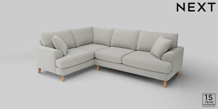 6.12.1 Buy Parker Medium Corner Sofa - Left Hand Chunky Texture Dove Low Retro Tapered - Light from the Laura Ashley online shop Click here to use our website with more accessibility support, for example screen readers
