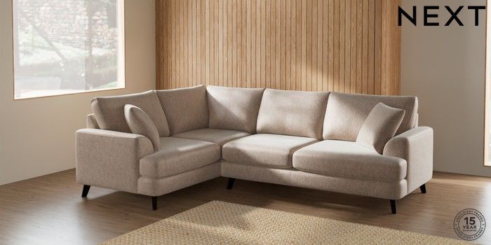 7.2.5 Buy Parker Medium Corner Sofa - Left Hand Cotswold Chenille Light Natural Low Retro Tapered - Dark from the Laura Ashley online shop Click here to use our website with more accessibility support, for example screen readers