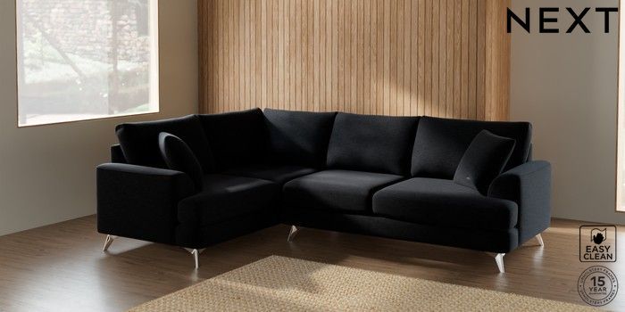 7.2.5 Buy Parker Medium Corner Sofa - Left Hand Fine Chenille Easy Clean Black High Metal - Chrome from the Laura Ashley online shop Click here to use our website with more accessibility support, for example screen readers