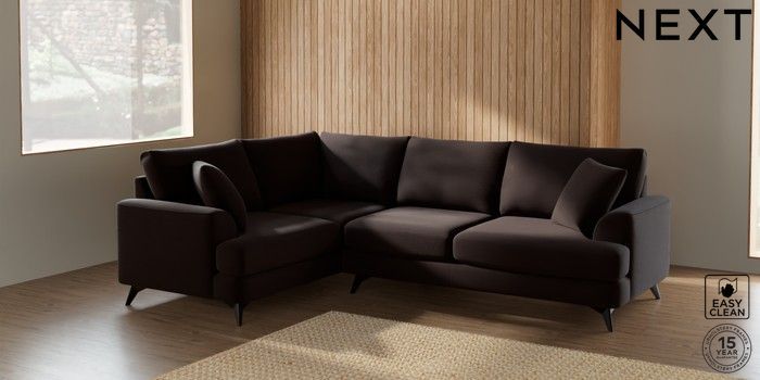 7.2.5 Buy Parker Medium Corner Sofa - Left Hand Fine Chenille Easy Clean Chocolate Brown High Metal - Black from the Laura Ashley online shop Click here to use our website with more accessibility support, for example screen readers
