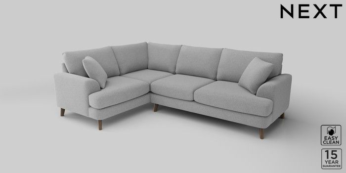 6.12.1 Buy Parker Medium Corner Sofa - Left Hand Tweedy Blend Easy Clean Light Silver Grey Low Retro Tapered - Mid from the Laura Ashley online shop Click here to use our website with more accessibility support, for example screen readers