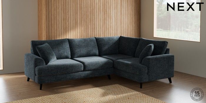 7.2.5 Buy Parker Medium Corner Sofa - Right Hand Chunky Chenille Dark Navy Blue Low Retro Tapered - Dark from the Laura Ashley online shop Click here to use our website with more accessibility support, for example screen readers