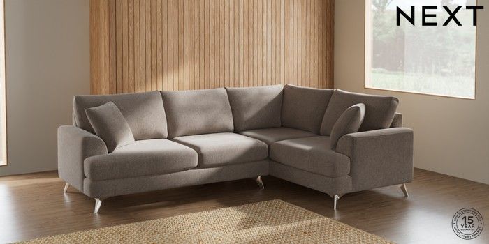 7.2.5 Buy Parker Medium Corner Sofa - Right Hand Chunky Chenille Light Dove High Metal - Chrome from the Laura Ashley online shop Click here to use our website with more accessibility support, for example screen readers